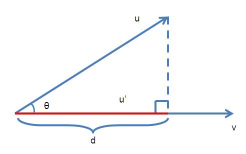 那么d就是u’的长度。而u’和v的方向是相同的,v的方向v/|v|也就是u’的方向。